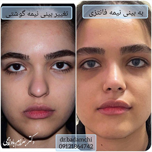 عکس قبل و بعد عمل بینی گوشتی توسط دکتر بادامچی